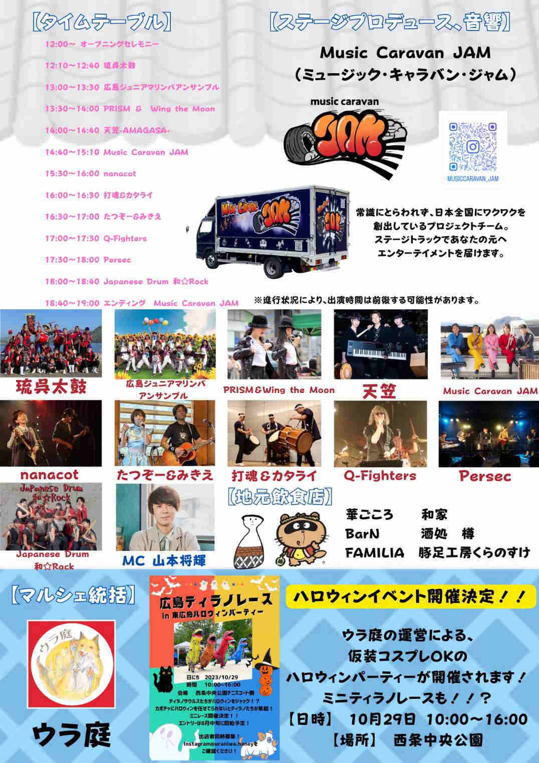 コムズ安佐パーク ローズ側(パチンコ)駐車場 特設ステージ (安佐北区安佐町飯室1592) (雨天時は館内での開催になります) |