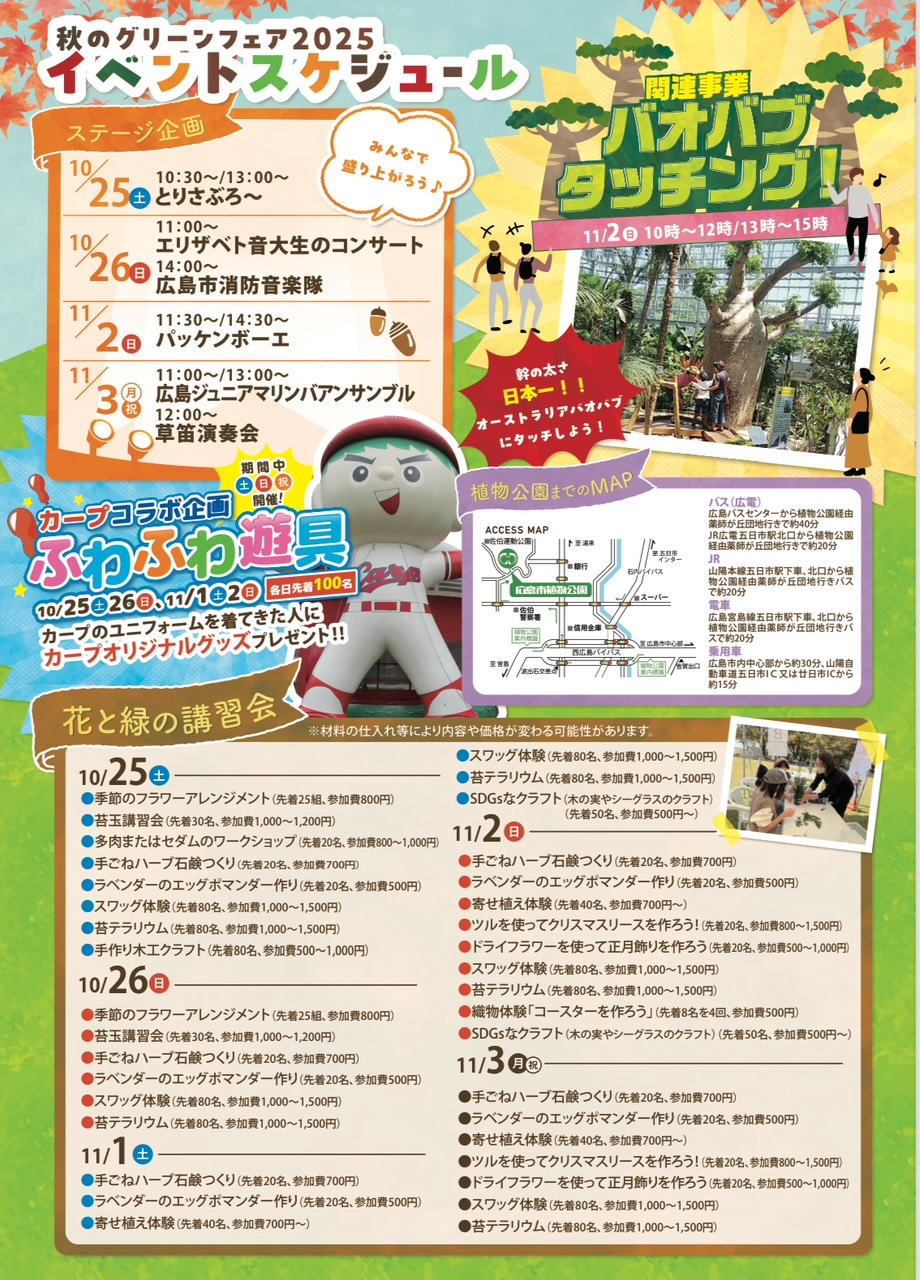 広島市植物公園 イベント広場ステージ (雨天時:展示資料館2階講堂) |