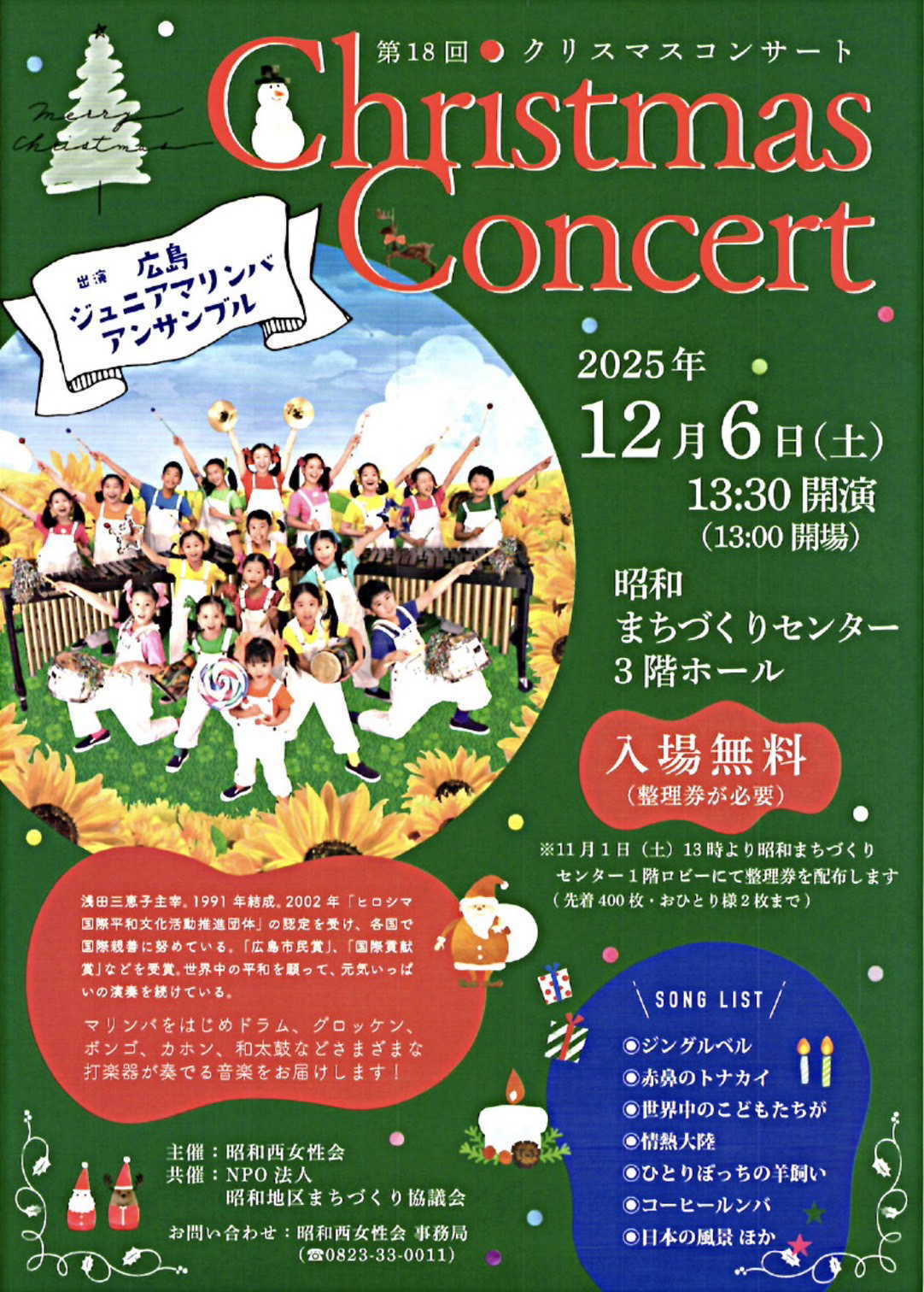 第18回 クリスマスコンサート 入場無料(整理券が必要) ![]() |