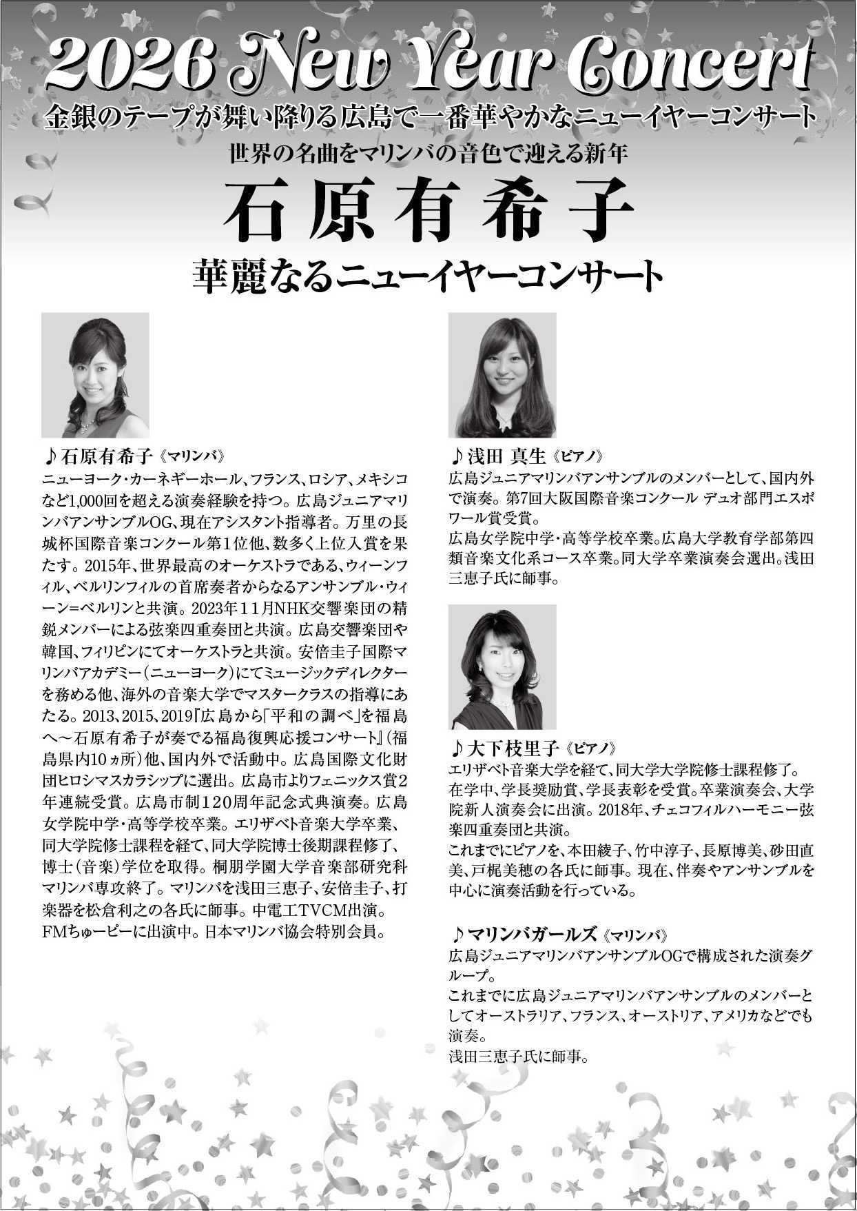 出演 マリンバ/石原有希子、大下枝里子、浅田真生、マリンバガールズ。